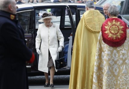Her Majesty The Queen accompanied by His Royal Highness The Duke of Edinburgh and His Royal Highness The Prince of Wales attended a service of celebration, in association with the King James Bible...